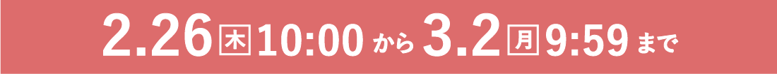 | 2026年2月26日(木) 10:00 から 3月2日(月) 9:59 まで |