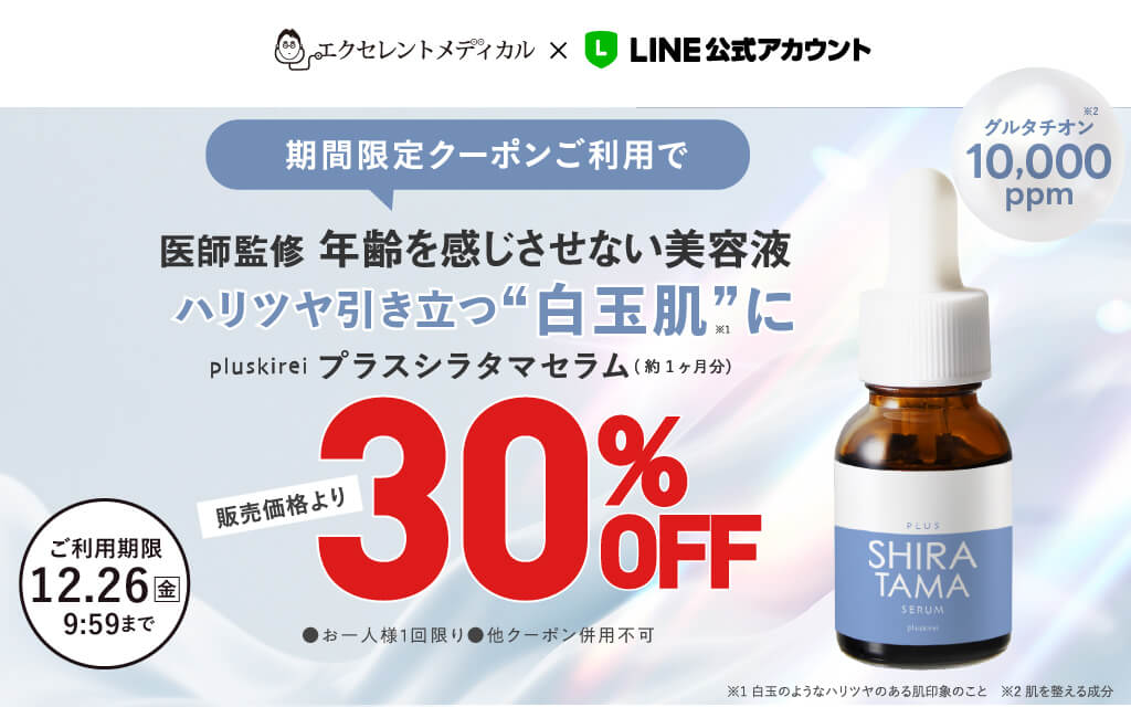 ※クーポンはエクセレントメディカル公式LINEお友だち限定の特別クーポンとなります。