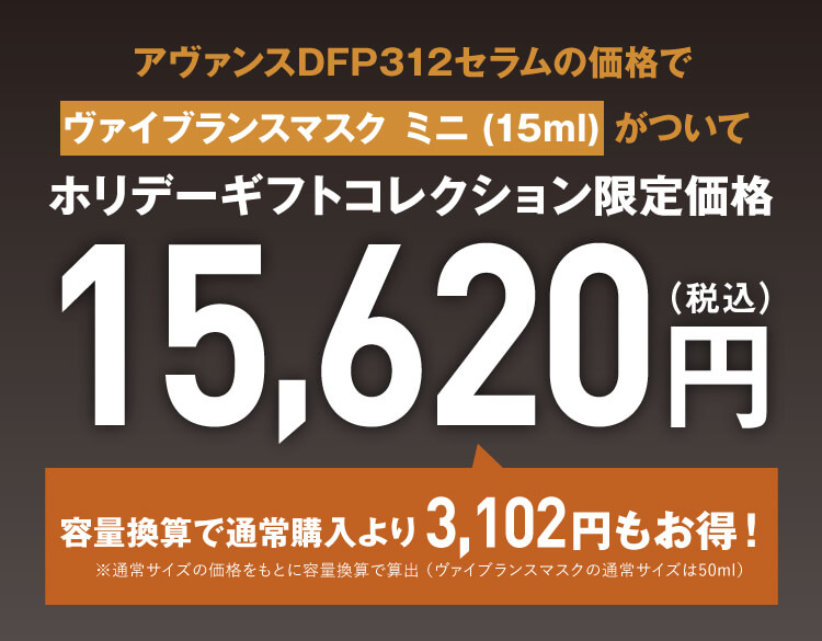アヴァンス DFP312 セラム (通常サイズ)のみの価格で、「ヴァイブランスマスク ミニ」がセットでついてくる、数量限定のお得な商品です!